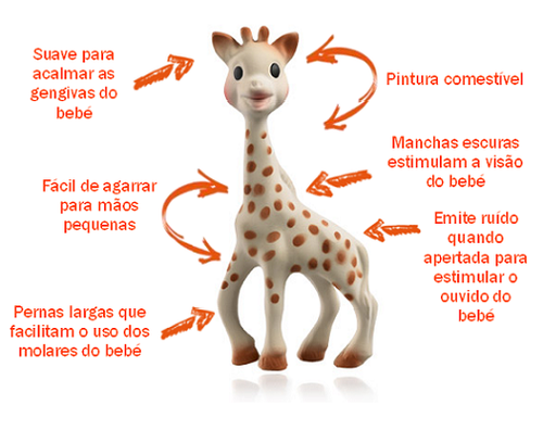 | Foram criados à volta do conceito da Girafa Sophie vários brinquedos e até cosméticos de bebé. Todos eles disponíveis na Bebitus aqui. |